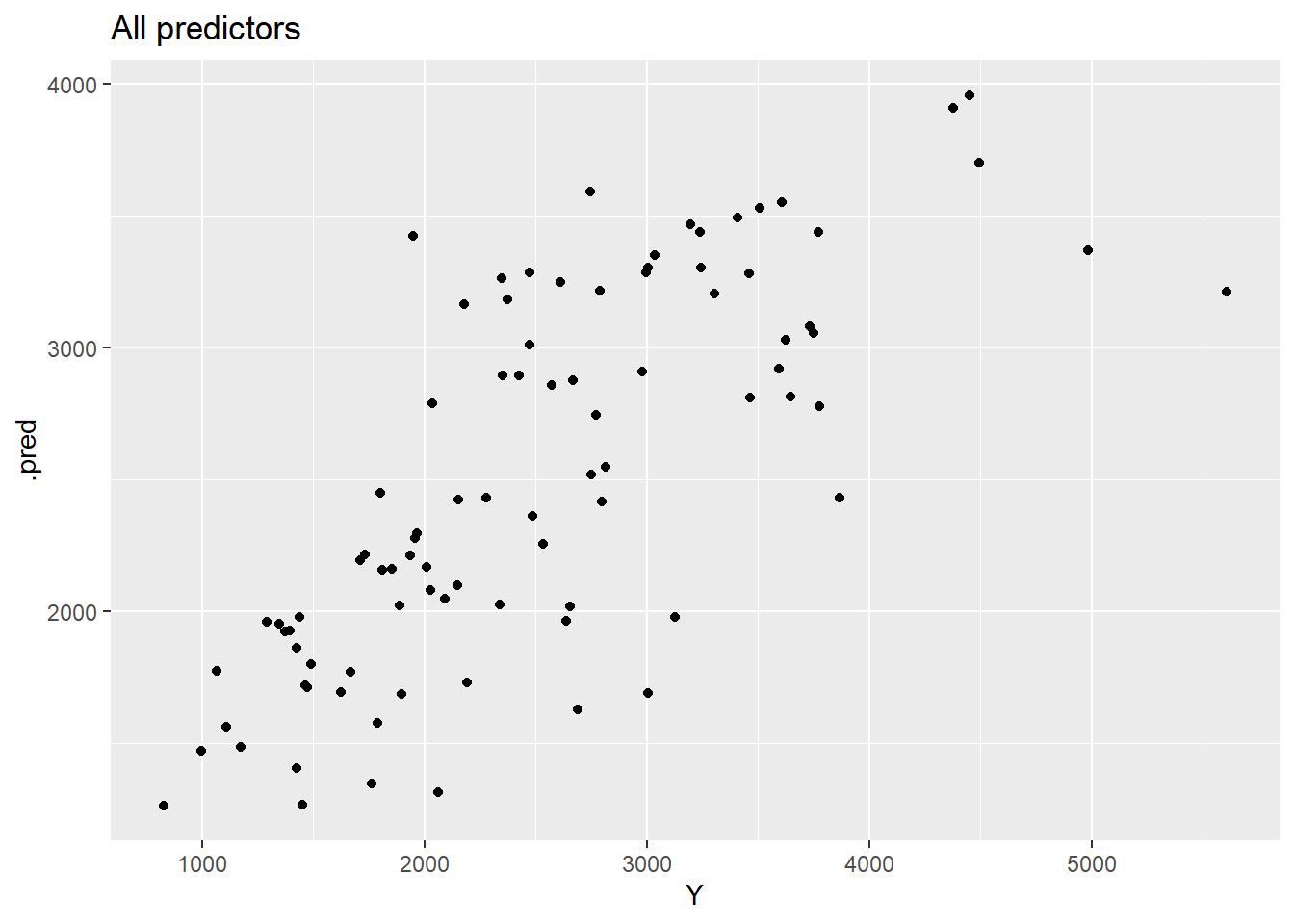 Linear regression models predicting Y using all predictors: